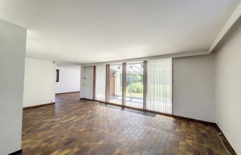 Villa d'architecte avec 4 chambres à coucher dans un endroit très calme et sur un terrain de 3a situé à Beersel. La villa comprend au rez-de-jardin : hall d'entrée, WC, séjour spacieux et lumineux de 55m² avec véranda et vue sur le jardin, cuisine équipée avec buanderie, WC, salle de douche et bureau. Au premier étage : 4 chambres, salle de bains. Au rez-de-chaussée à rue, garage 2 voitures avec salle de bains et grande salle de jeux. Cette maison et ses environs respirent le calme et la verdure, à proximité du centre de Beersel. Grenier isolé. Double vitrage - Chauffage central au gaz (2018). Puits d'eau de pluie 5000L. PEB : C 214 kWh/m².