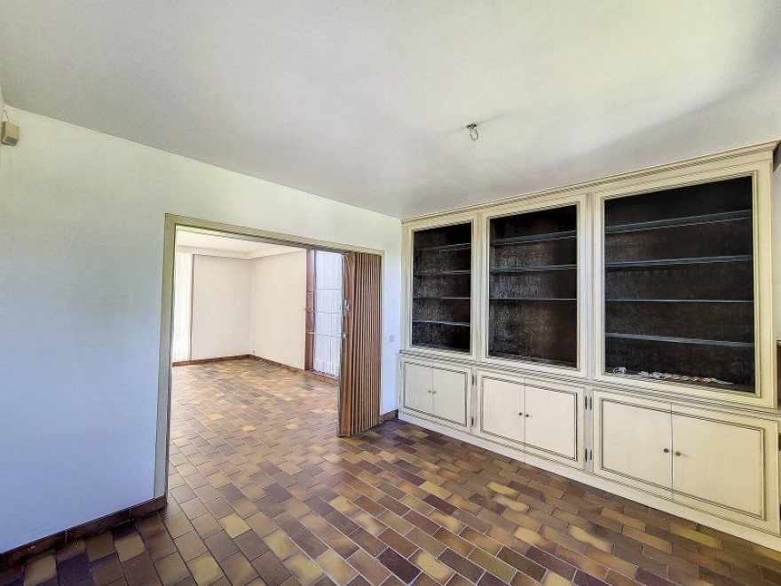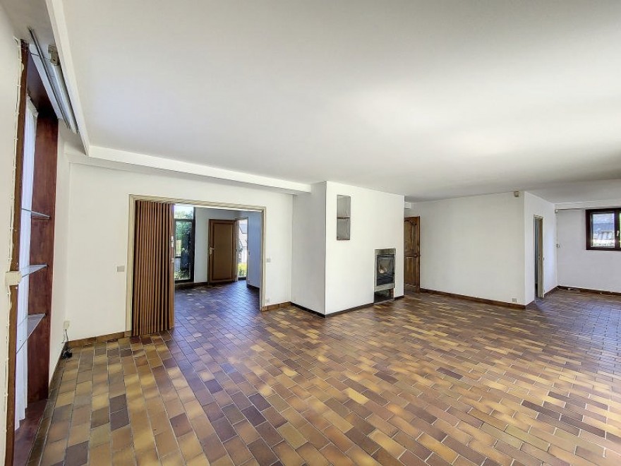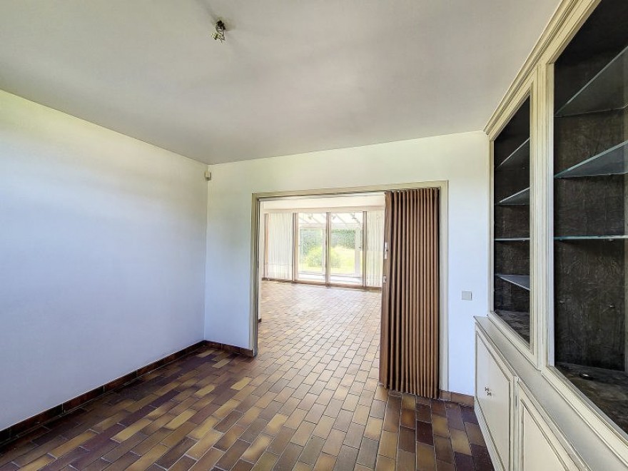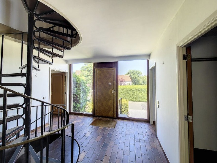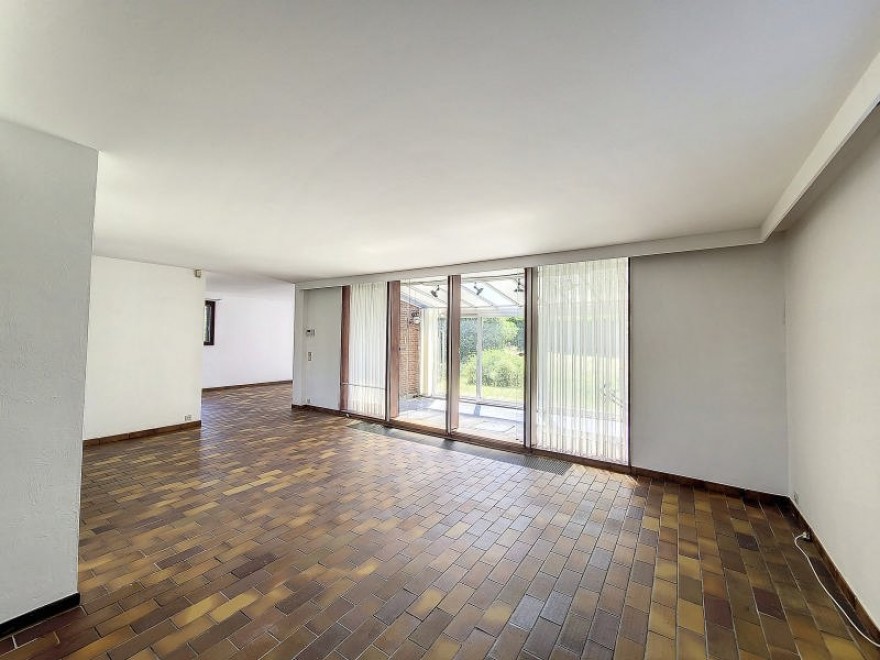 Villa d'architecte avec 4 chambres à coucher dans un endroit très calme et sur un terrain de 3a situé à Beersel. La villa comprend au rez-de-jardin : hall d'entrée, WC, séjour spacieux et lumineux de 55m² avec véranda et vue sur le jardin, cuisine équipée avec buanderie, WC, salle de douche et bureau. Au premier étage : 4 chambres, salle de bains. Au rez-de-chaussée à rue, garage 2 voitures avec salle de bains et grande salle de jeux. Cette maison et ses environs respirent le calme et la verdure, à proximité du centre de Beersel. Grenier isolé. Double vitrage - Chauffage central au gaz (2018). Puits d'eau de pluie 5000L. PEB : C 214 kWh/m².