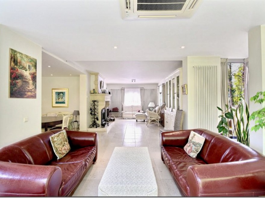 --- VENDU --- Asse, Terlindenvijverstraat 4, Villa de +/- 400m² bruts (205 m² habitables hors garages, caves, combles, buanderie salle de fitnes etc...) se composant comme suit: - Rez: Hall d'entrée, séjour climatisé de 47m² avec grande baie vitrée, salle à manger, cuisine hyper-équipée de 23m² avec taque vitro, hotte, réfrigérateur, congélateur, ilôt central, four, micro-ondes, lave-vaisselle et évier. Hall de nuit, wc séparé, chambre parentale et salle de bains avec jacuzzi. - 1er étage: 3 chambres de 27,8 m², 20,2 m² et 15,6 m², une salle de douche et un wc séparé. - Combles non aménagés - Sous-sol: garage 2 voitures de 41,3m², cellier, buanderie, pièce polyvalente actuellement exploitée comme salle de fitess La maison est équipée de climatisation de système d'alarme avec vidéo-sureveillance. Elle dispose d'abords paysagés ainsi que d'une terrasse, d'un vaste jardin et d'une aire de recul pour 2 véhicules. FAIRE OFFRE À PARTIR DE 499.000 € Cliquez ICI pour une visite virtuelle Renseignements et visites au 02 468 58 00 ou www.vie-immo.be